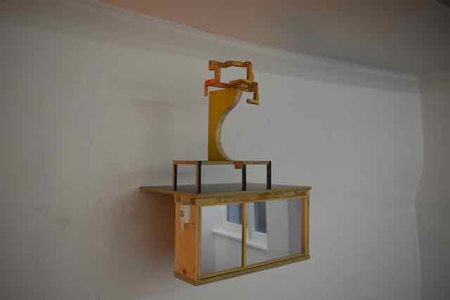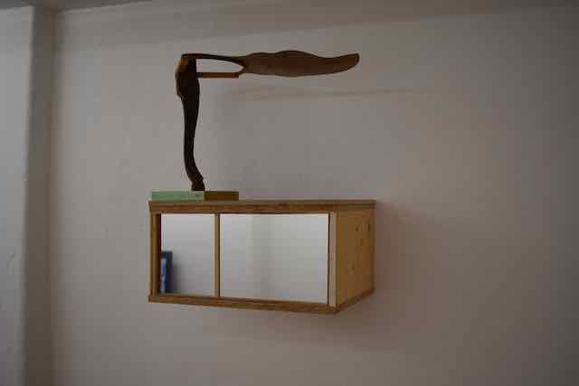 Thematisiert den Raum in dem wir leben und spiegelt unser Handeln und Verhalten. In seiner künstlerischen Auseinandersetzung befragt er die verschiedenen Schichten der Zeit, Material, Körper und Poesie.
