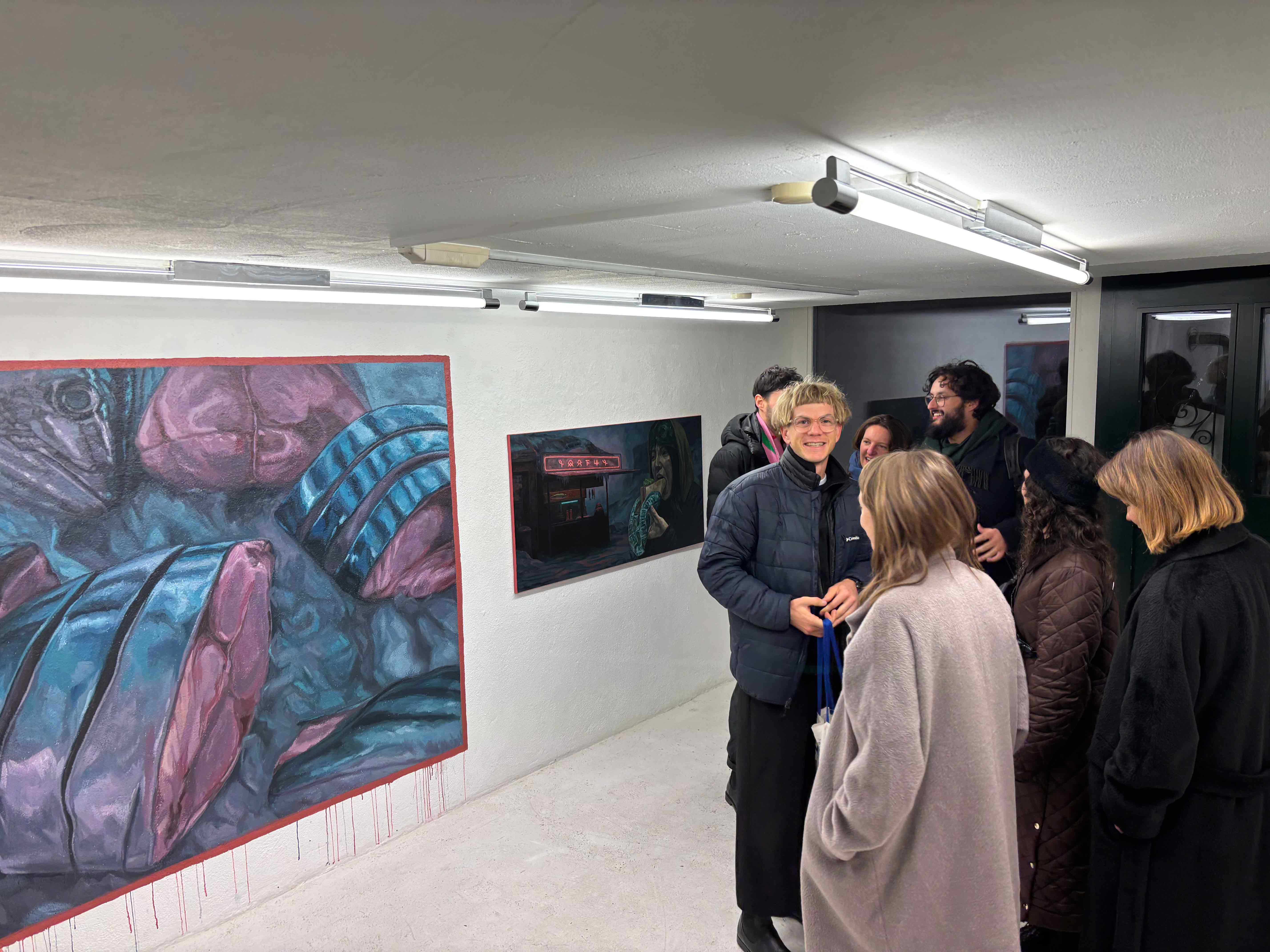 Cosimo Wunderlin arbeitet medienübergreifend und verfolgt dabei stets einen konzeptuellen Ansatz. Ausgehend von der Malerei kombiniert er seine Werke geschickt mit Elementen aus Illustration, Animation oder Sound. So werden düstere Farbstimmungen mühelos mit gestalterischen Referenzen zu Film und Comic ergänzt, oder gar eigene typografische Elemente hinzugefügt. Malereien von futuristisch anmutenden Figuren, Objekten oder verlassenen Schauplätzen sind wiederkehrende Motive in Cosimo Wunderlins Arbeit. Sie geben den Betrachter*innen Hinweise auf ein zugrunde liegendes Narrativ in einer nahen oder fernen dystopischen Zukunft. Manche Werke erinnern an Filmstills und erzeugen eine cineastische Atmosphäre, andere spielen mit surrealen Elementen und laden zur Interpretation ein. Mit jeder Arbeit wird die Geschichte erweitert und ausgebaut. Das Ergebnis sind Fragmente eines Gesamtkunstwerks, welche zusammenhängend oder unabhängig voneinander gelesen werden können. www.cosimowunderlin.ch | Instagram: cosimo_wunderlin